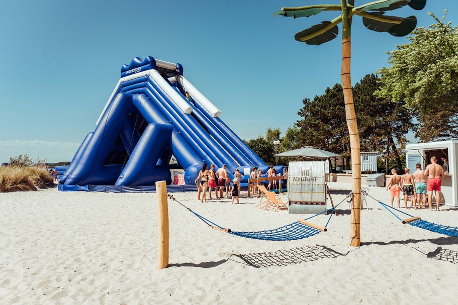 Der Dünenpark in Grömitz ist erst im Jahr 2024 neu eröffnet worden und bietet vielfältige Angebote: Attraktive Shops zum Bummeln, ein Abenteuer- Wasserspielplatz für die Kleinen, ein Beachclub direkt am Meer, eine Outdoor-Boulderwand, ein Café und einige Restaurants zum Schlemmen.