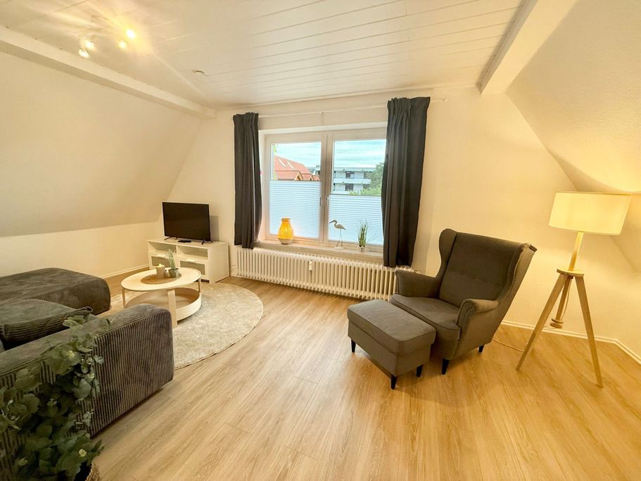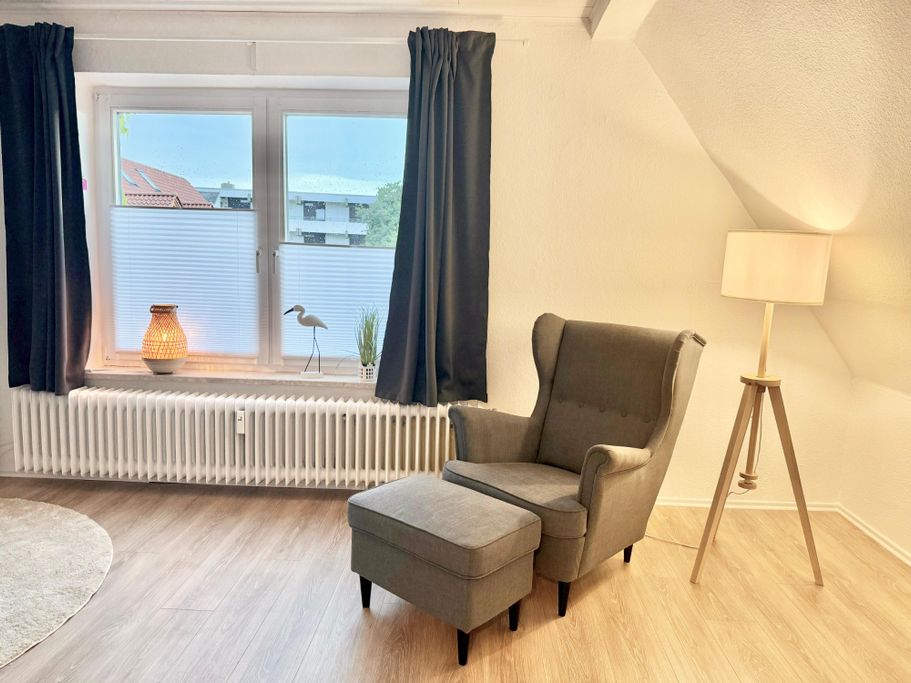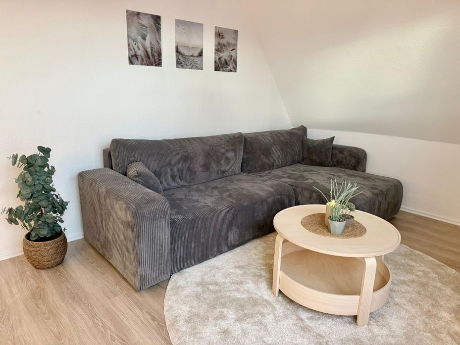 - Wohnzimmer mit Schlafsofa (140 x 200cm) und Ohrensessel