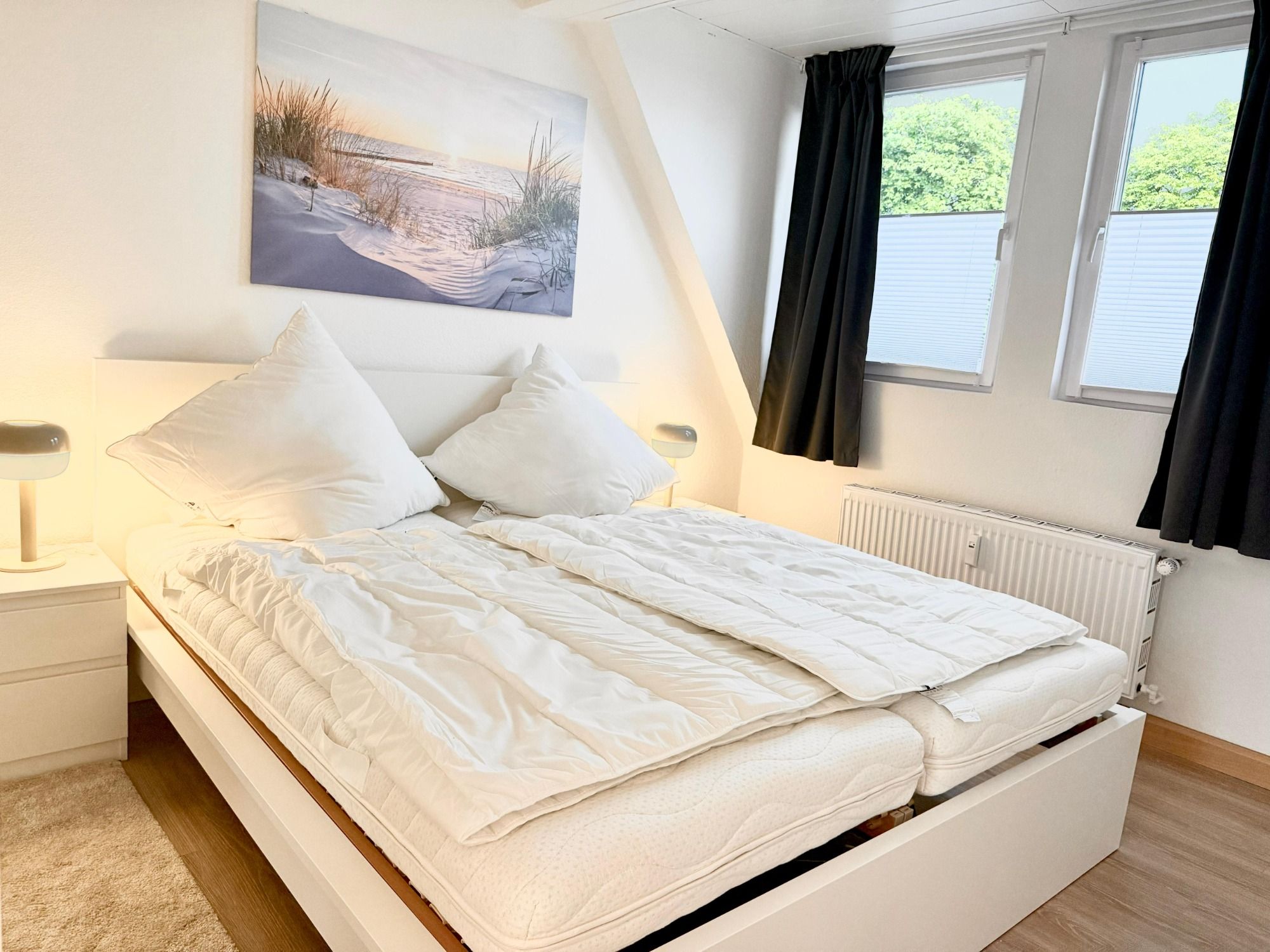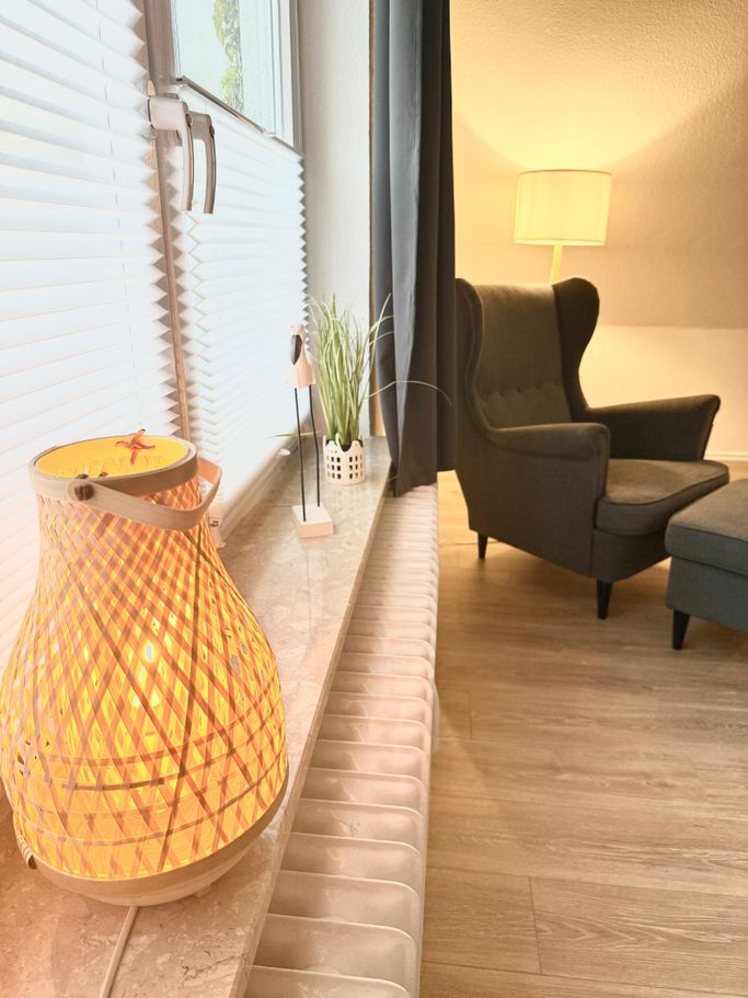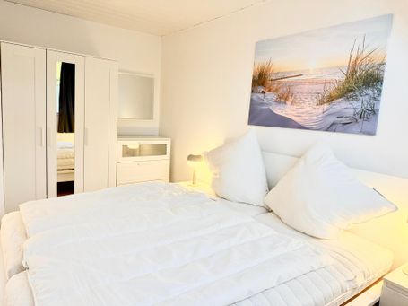 Im Schlafzimmer befinden sich ein Doppelbett (180 x 200 cm), sowie ein Kleiderschrank und eine Kommode. Das Wohnzimmer bietet Raum zur Entspannung und eine weitere Schlafgelegenheiten (Schlafsofa 140 x 200 cm). Ein Kinderreisebett kann auf Anfrage gestellt werden.