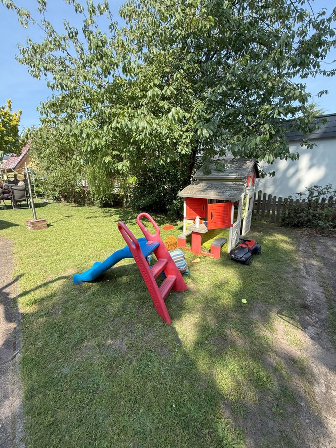 Für unseren kleinen Gäste gibt es im Garten ein Spielhaus mit Spielzeug und eine Rutsche, die sehr gerne genutzt werden dürfen.